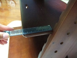 そして右側(白)が今までのチェア の横板の内面です。 手で板(座席や足置き台)を押さ えながらボルトを留める、というように、2つの動作を同時にやらな くてはならず、よくズレて留める のに四苦八苦しておりました。
