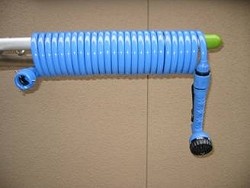 このホース専用のかけるところを作れば、ホースの中の水きりもできるし、かけるだけの収納なら手軽に片付けられるので、オススメです。