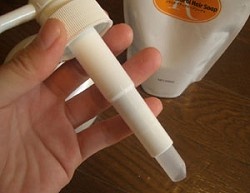 | 中のポンプ。一般的なシャンプーボトルよりも、太めです。 |